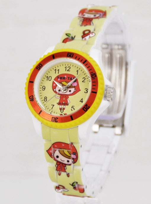 |  нажмите для увеличения | Наручные часы ТИК-ТАК Н109-3 Красная шапочка | Материал корпуса | Пластик | | Размеры корпуса | | | длина | 34 мм. | | ширина | 28 мм. | | толщина | 10 мм. | | Материал ремешка/браслета | Пластик | | Диаметр обхвата браслета | 70 мм. | | Механизм | TMI PC21 | | Особенности | Стрелочная индикация времени | | Комплектация | Картонная коробка ТИК-ТАК, паспорт, инструкция по эксплуатации и гарантийный талон |