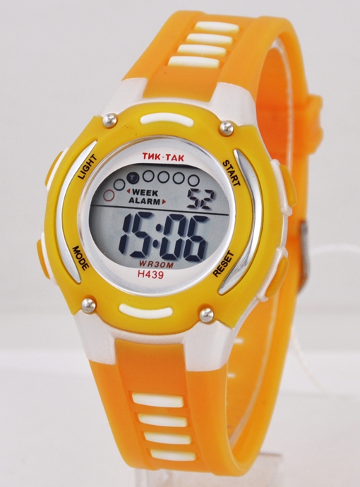 |  нажмите для увеличения | Электронные часы ТИК-ТАК Н439 Оранжевые | Материал корпуса | Пластик | | Размеры корпуса | | | длина | 35 мм. | | ширина | 33 мм. | | толщина | 13 мм. | | Материал ремешка/браслета | PU | | Длина часов с ремешком | 225 мм. | | Механизм | Электронный с LCD дисплеем | | Особенности | 12/24 формат времени, дата, будильник, секундомер, подсветка | | Комплектация | Прозрачный пакет, паспорт, инструкция по эксплуатации и гарантийный талон |