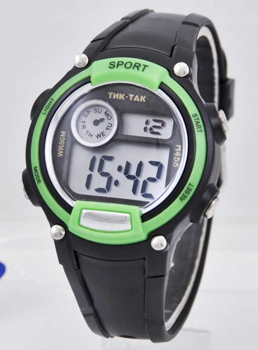 |  нажмите для увеличения | Электронные часы ТИК-ТАК Н458 WR50 зеленые | Материал корпуса | Пластик | | Размеры корпуса | | | длина | 40 мм. | | ширина | 35 мм. | | толщина | 14 мм. | | Материал ремешка/браслета | PU | | Длина часов с ремешком | 225 мм. | | Механизм | Электронный с LCD дисплеем | | Особенности | 12/24 формат времени, дата, будильник, секундомер, подсветка. Водонепроницаемость 50м. | | Комплектация | Прозрачный пакет, паспорт, инструкция по эксплуатации и гарантийный талон |