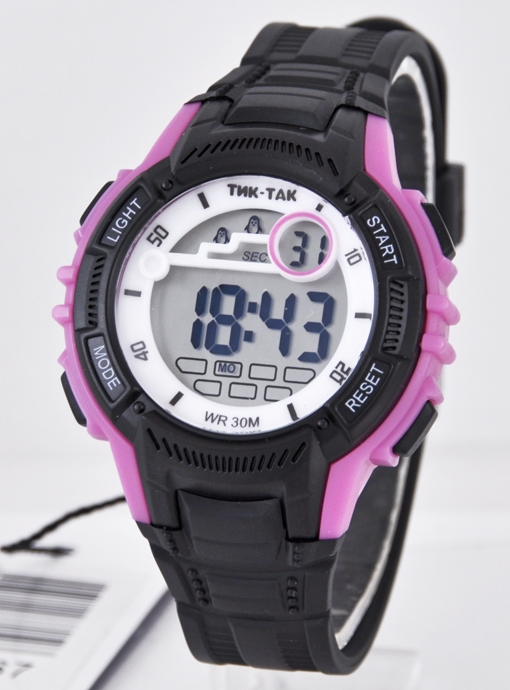 |  нажмите для увеличения | Электронные часы ТИК-ТАК Н467 черно-фиолетовые | Материал корпуса | Пластик | | Размеры корпуса | | | длина | 40 мм. | | ширина | 38 мм. | | толщина | 14 мм. | | Материал ремешка/браслета | PU | | Длина часов с ремешком | 220 мм. | | Механизм | Электронный с LCD дисплеем | | Особенности | 12/24 формат времени, дата, будильник, секундомер, подсветка | | Комплектация | Прозрачный пакет, паспорт, инструкция по эксплуатации и гарантийный талон |