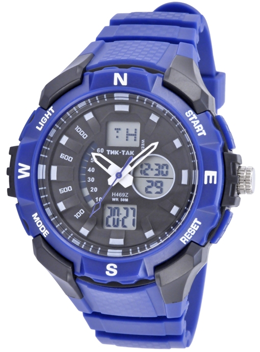 |  нажмите для увеличения | Электронные часы ТИК-ТАК Н469Z WR50 синие | Материал корпуса | Пластик | | Размеры корпуса | | | длина | 50 мм. | | ширина | 45 мм. | | толщина | 15 мм. | | Материал ремешка/браслета | PU | | Длина часов с ремешком | 250 мм. | | Механизм | Двойная индикация | | Особенности | 12/24 формат времени, дата, будильник, секундомер, подсветка, стрелочная и электронная индикация времени | | Комплектация | Прозрачный пакет, паспорт, инструкция по эксплуатации и гарантийный талон |