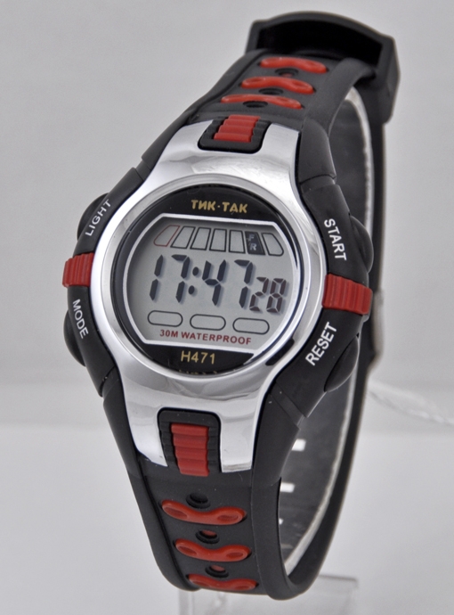 |  нажмите для увеличения | Электронные часы ТИК-ТАК Н471 черно-красные | Материал корпуса | Пластик | | Размеры корпуса | | | длина | 40 мм. | | ширина | 36 мм. | | толщина | 14 мм. | | Материал ремешка/браслета | PU | | Длина часов с ремешком | 225 мм. | | Механизм | Электронный с LCD дисплеем | | Особенности | 12/24 формат времени, дата, будильник, секундомер, подсветка | | Комплектация | Прозрачный пакет, паспорт, инструкция по эксплуатации и гарантийный талон |