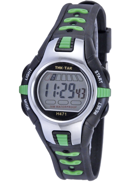 |  нажмите для увеличения | Электронные часы ТИК-ТАК Н471 черно-зеленые | Материал корпуса | Пластик | | Размеры корпуса | | | длина | 40 мм. | | ширина | 36 мм. | | толщина | 14 мм. | | Материал ремешка/браслета | PU | | Длина часов с ремешком | 225 мм. | | Механизм | Электронный с LCD дисплеем | | Особенности | 12/24 формат времени, дата, будильник, секундомер, подсветка | | Комплектация | Прозрачный пакет, паспорт, инструкция по эксплуатации и гарантийный талон |
