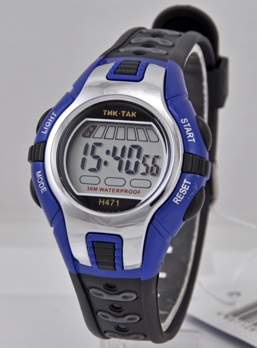 |  нажмите для увеличения | Электронные часы ТИК-ТАК Н471 черно-синие | Материал корпуса | Пластик | | Размеры корпуса | | | длина | 40 мм. | | ширина | 36 мм. | | толщина | 14 мм. | | Материал ремешка/браслета | PU | | Длина часов с ремешком | 225 мм. | | Механизм | Электронный с LCD дисплеем | | Особенности | 12/24 формат времени, дата, будильник, секундомер, подсветка | | Комплектация | Прозрачный пакет, паспорт, инструкция по эксплуатации и гарантийный талон |