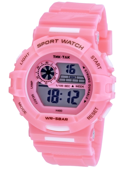 |  нажмите для увеличения | Электронные часы ТИК-ТАК Н480 WR50 розовые | Материал корпуса | Пластик | | Размеры корпуса | | | длина | 48 мм. | | ширина | 48 мм. | | толщина | 17 мм. | | Материал ремешка/браслета | PU | | Длина часов с ремешком | 220 мм. | | Механизм | Электронный с LCD дисплеем | | Особенности | 12/24 формат времени, дата, будильник, секундомер, подсветка. Водонепроницаемость 50м. | | Комплектация | Прозрачный пакет, паспорт, инструкция по эксплуатации и гарантийный талон |