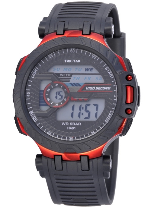 |  нажмите для увеличения | Электронные часы ТИК-ТАК Н481 WR50 черно-красные | Материал корпуса | Пластик | | Размеры корпуса | | | длина | 47 мм. | | ширина | 46 мм. | | толщина | 16 мм. | | Материал ремешка/браслета | PU | | Длина часов с ремешком | 240 мм. | | Механизм | Электронный с LCD дисплеем | | Особенности | 12/24 формат времени, дата, будильник, секундомер, подсветка. Водонепроницаемость 50м. | | Комплектация | Прозрачный пакет, паспорт, инструкция по эксплуатации и гарантийный талон |