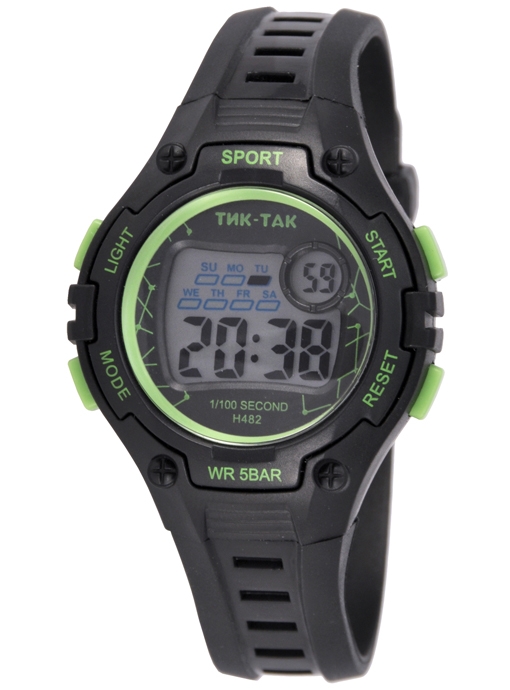 |  нажмите для увеличения | Электронные часы ТИК-ТАК Н482 WR50 черно-зеленые | Материал корпуса | Пластик | | Размеры корпуса | | | длина | 44 мм. | | ширина | 35 мм. | | толщина | 14 мм. | | Материал ремешка/браслета | PU | | Длина часов с ремешком | 220 мм. | | Механизм | Электронный с LCD дисплеем | | Особенности | 12/24 формат времени, дата, будильник, секундомер, подсветка иллюминатор. Водонепроницаемость 50м. | | Комплектация | Прозрачный пакет, паспорт, инструкция по эксплуатации и гарантийный талон |