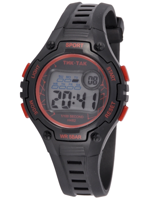 |  нажмите для увеличения | Электронные часы ТИК-ТАК Н482 WR50 черно-красные | Материал корпуса | Пластик | | Размеры корпуса | | | длина | 44 мм. | | ширина | 35 мм. | | толщина | 14 мм. | | Материал ремешка/браслета | PU | | Длина часов с ремешком | 220 мм. | | Механизм | Электронный с LCD дисплеем | | Особенности | 12/24 формат времени, дата, будильник, секундомер, подсветка иллюминатор. Водонепроницаемость 50м. | | Комплектация | Прозрачный пакет, паспорт, инструкция по эксплуатации и гарантийный талон |